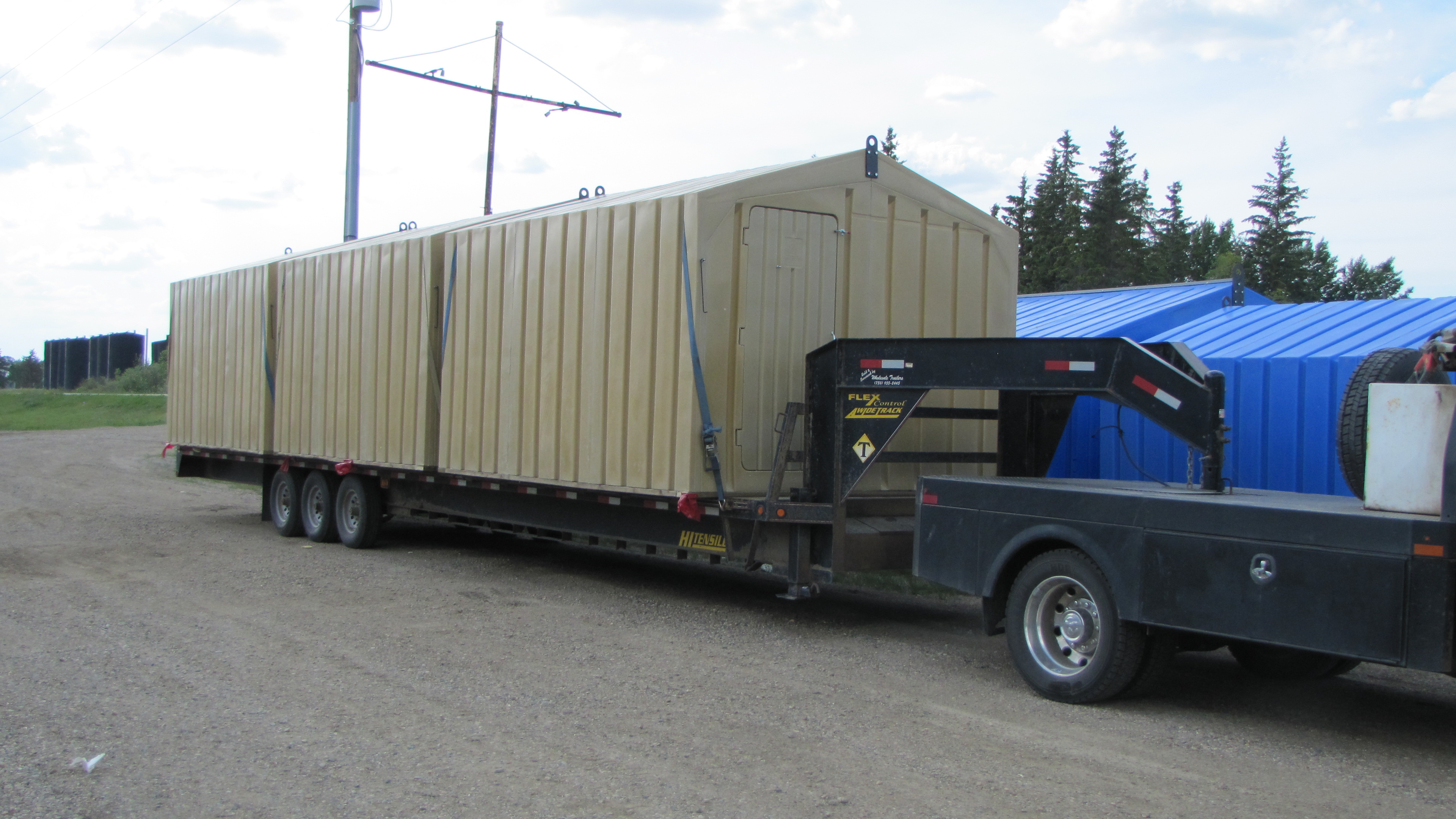 Our modular shelters come in a wide variety of sizes with outside dimensions ranging from 8’ x 10’ all the way to a 16’ x 48’ shelter (inside dimensions are 11" less each way due to thickness of base and walls). The modular shelter is a bolt together building system that allows YOU to size YOUR building to YOUR specific requirements. A 30” x 69” walk-in door, lift lugs, inner tie downs, stake down holes in each corner and R-10 urethane insulation all come as standard features. Available options include; multiple exits, panic hardware, louvered vents, plexi-glass windows, gas detector inspection doors, roof turbines, large drive-in doors, inner skins, custom coloring and a 2"x2"x1/4" painted steel permiter base which can replace standard 2x6 wooden permiter. Explosion proof CATA-Dyne heaters may also be included with your purchase. As with all products manufactured by D & G, only high quality virgin polyethylene is used. The following sizes are available but not limited to: